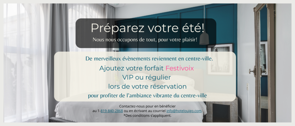 Nous avons loué une chambre pour le Festivoix! Honnêtement le meilleur hôtel qu’on aurait pu avoir! À 5 minutes à pied du festival et tout plein de restaurants autour. Ce qui m’inquiétait le plus, c’était le bruit, on avait peur de ne pas pouvoir dormir comme ça au centre-ville.. mais les chambres sont très bien insonorisées, on a rien entendu du tout! Vraiment tranquille! Chambre magnifique, rideau immense pour cacher tout le soleil du matin! On a vraiment bien dormi dans le confortable lit king. On va revenir l’an prochain!