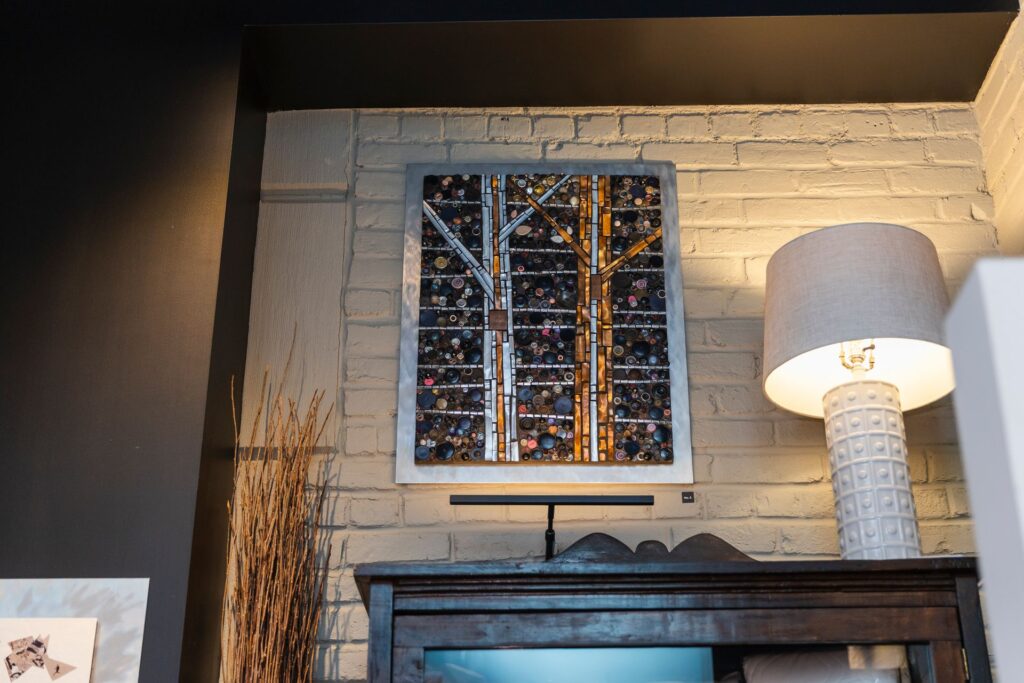 Sélectionnée pour son art contemporain à valeur environnementale, Roxane crée des mosaïques à partir de matières recyclées.