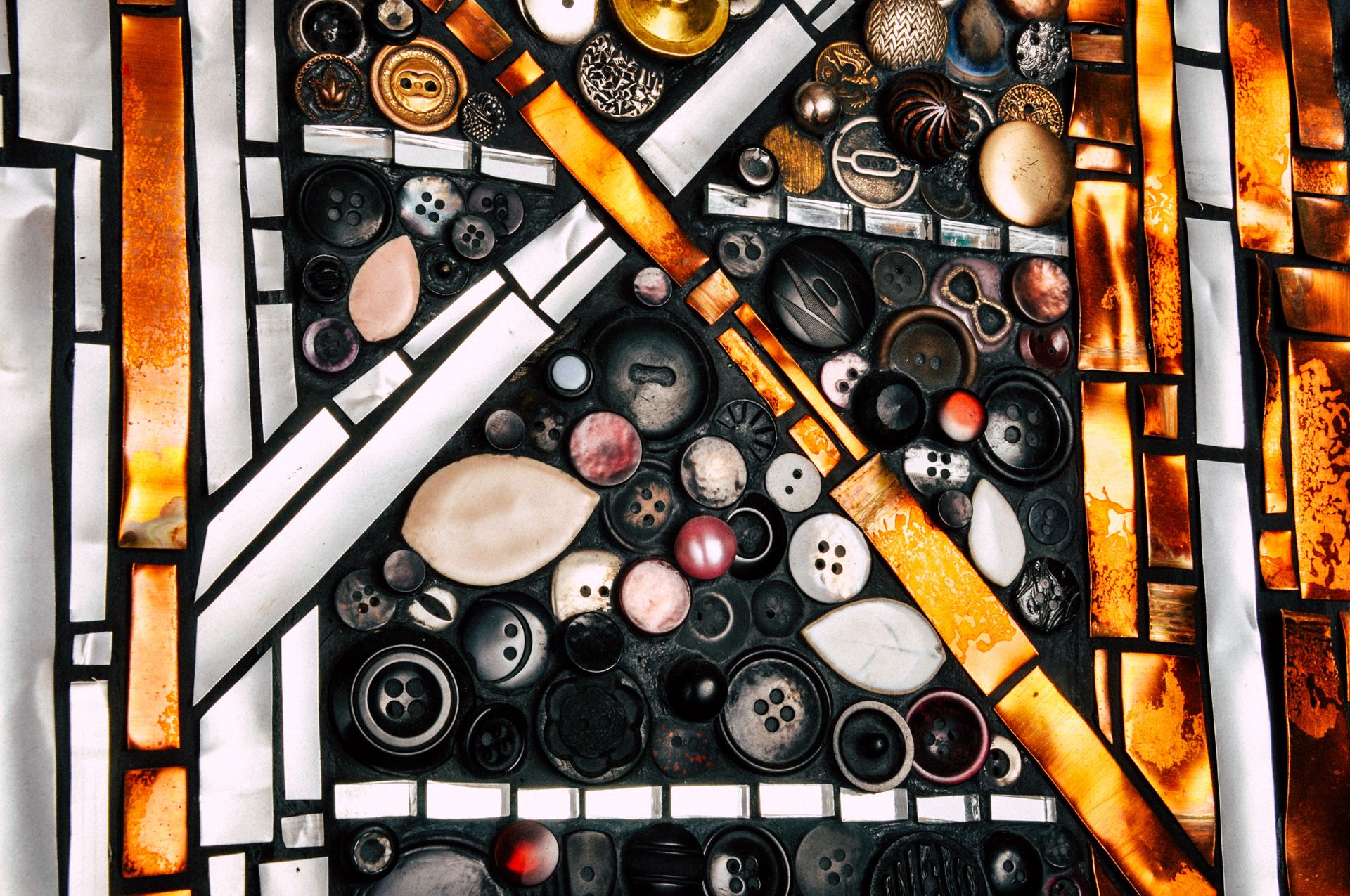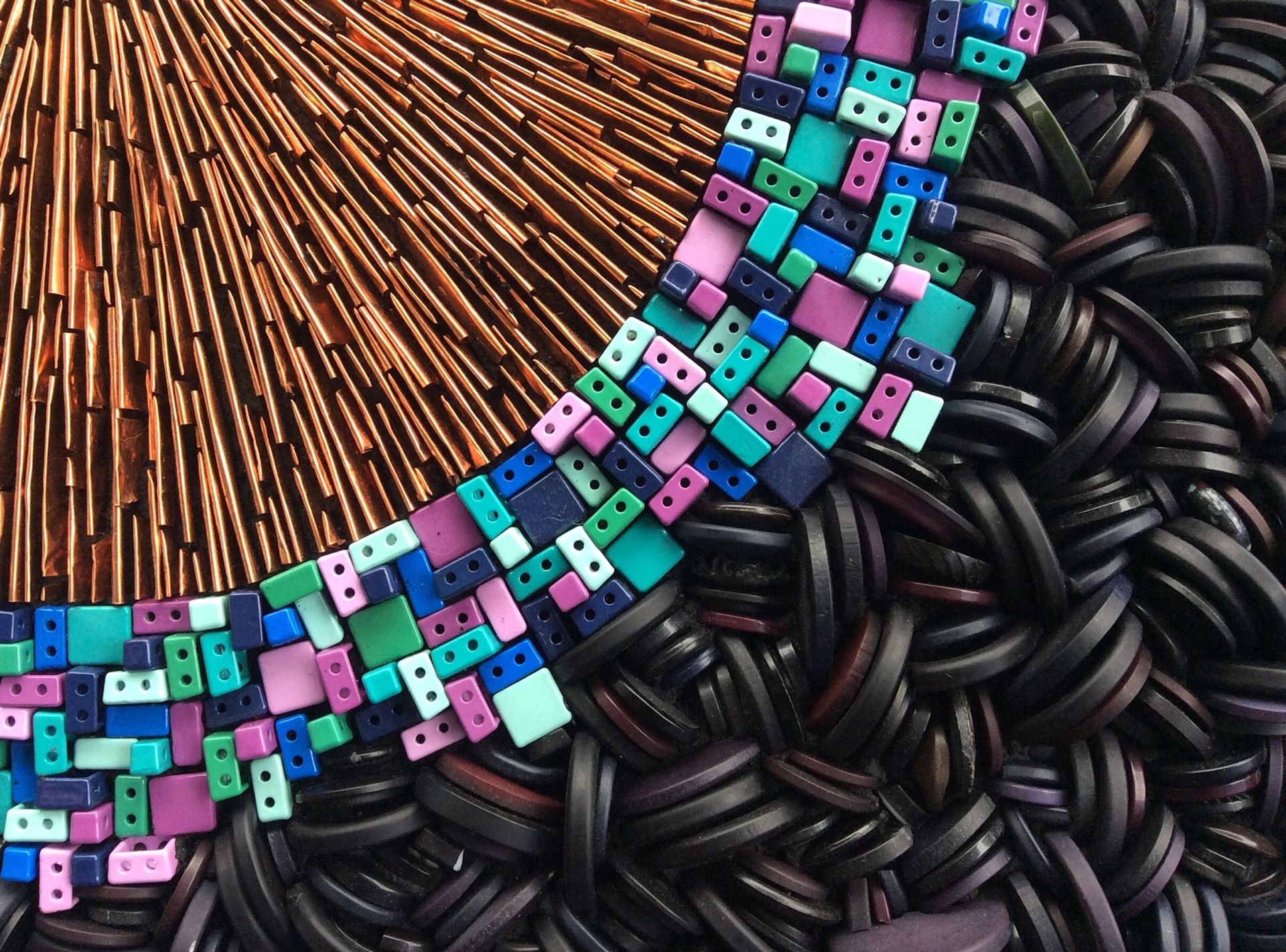 Sélectionnée pour son art contemporain à valeur environnementale, Roxane crée des mosaïques à partir de matières recyclées.